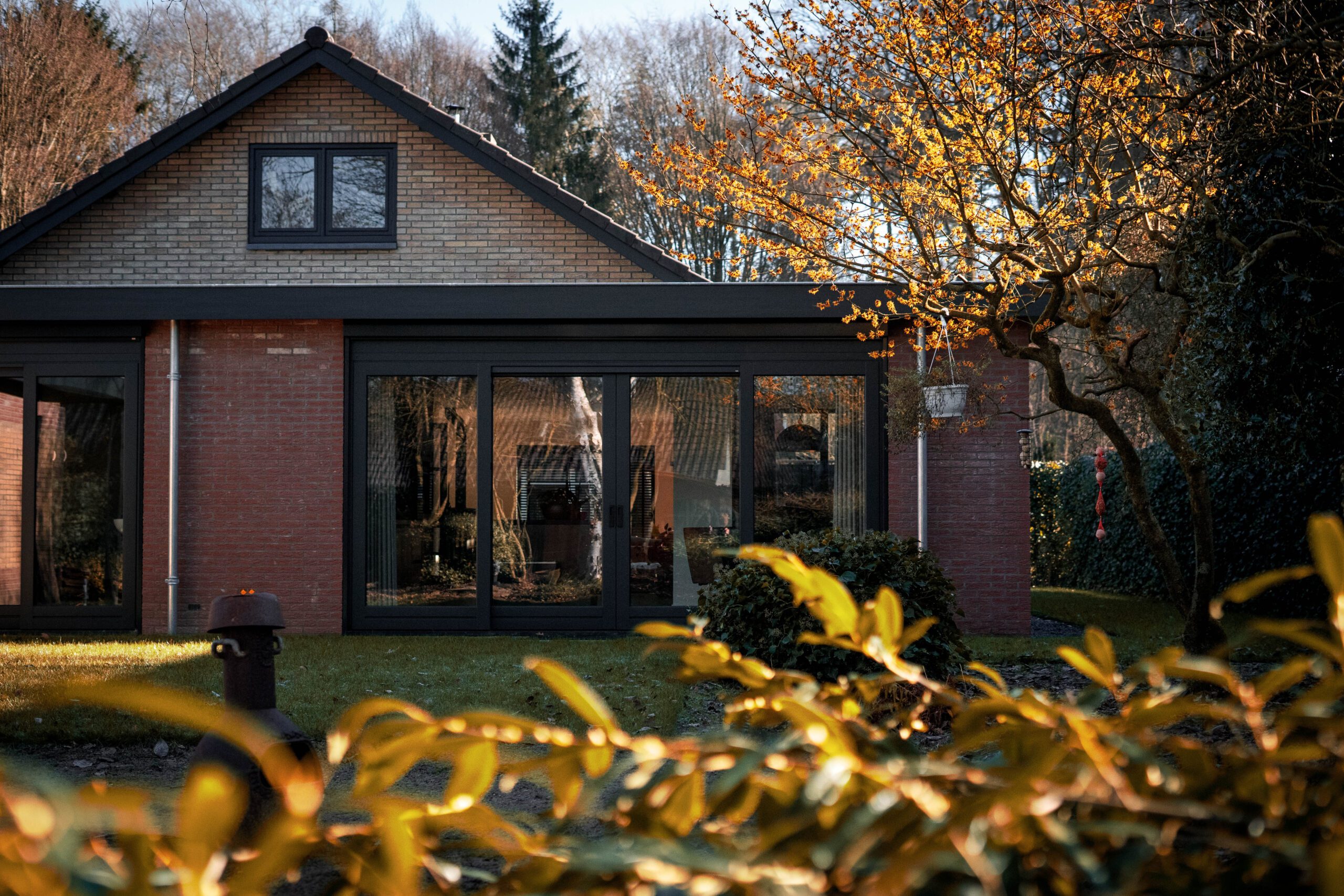 Aan de achterzijde van de woning is over de gehele breedte een uitbouw gerealiseerd. Door een glazen schuifpui biedt de woning ruim zich vanuit meerdere plaatsen een prachtig en ruim zich op de diepe tuin. Kortom een woning die van alle luxe en alle gemakken is voorzien.