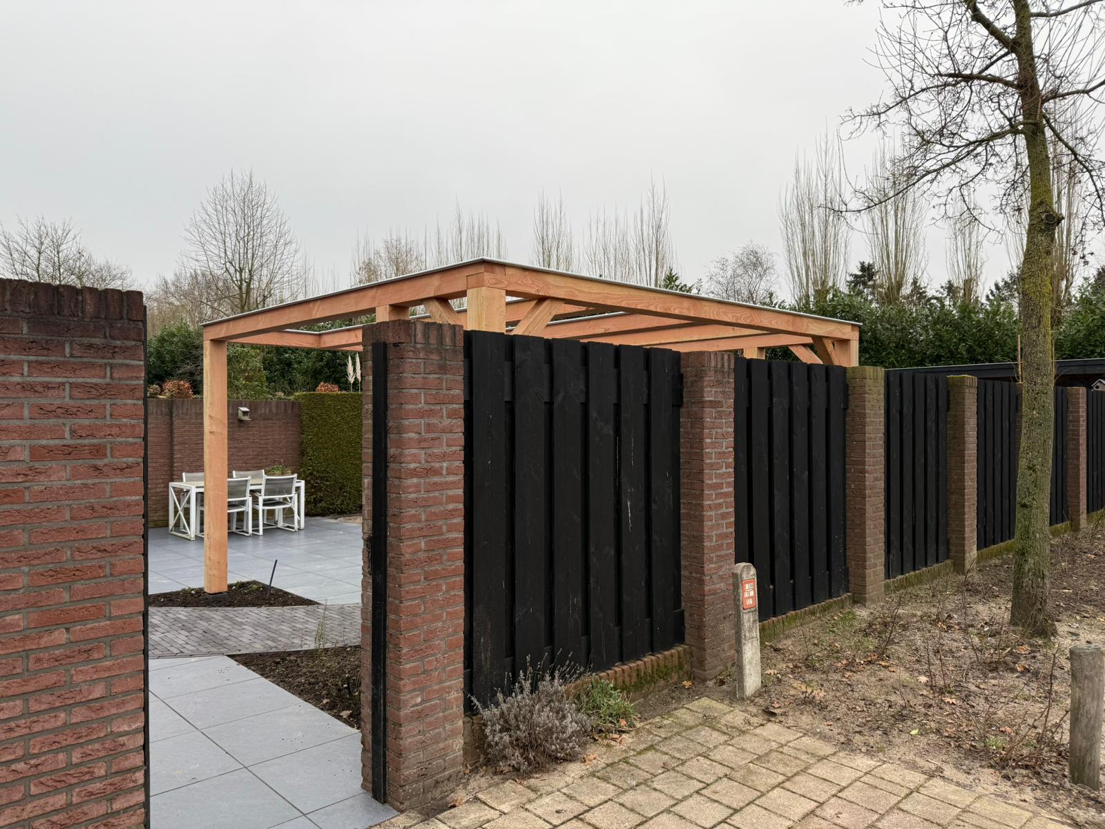 Deze tuin in Putten werd voorzien van een pergola van Douglas hout. Door de zinken afwerking aan de bovenkant gaat de pergola jaren mee. Mooi voor in uw tuin om bijvoorbeeld de schommel aan te hangen, of om er een druivenstruik aan te laten groeien. Een pergola maakt uw tuin af.